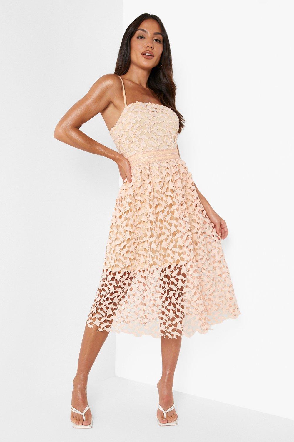 Women S Lace Detail Midi Skater Dress Boohoo Uk